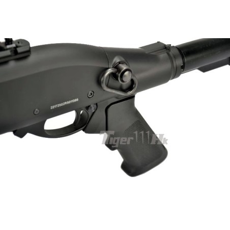 Escopeta de corredera de gas Golden Eagle M870 AR Tactical Tri-Shot La Remington modelo 870 es una escopeta de corredera fabricada por Remington Arms Company, EE. UU. Es ampliamente utilizada por el público para tiro deportivo, caza y autodefensa y también es utilizada por organizaciones policiales y militares en todo el mundo.