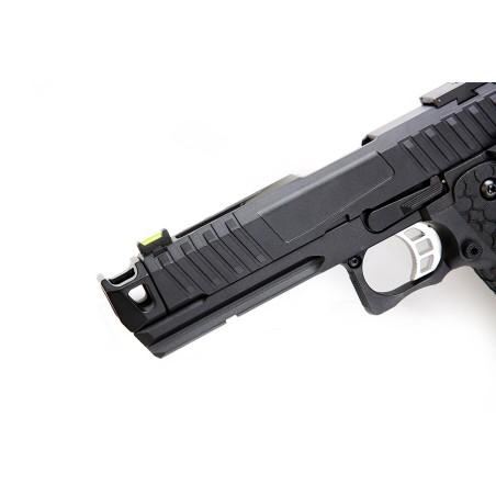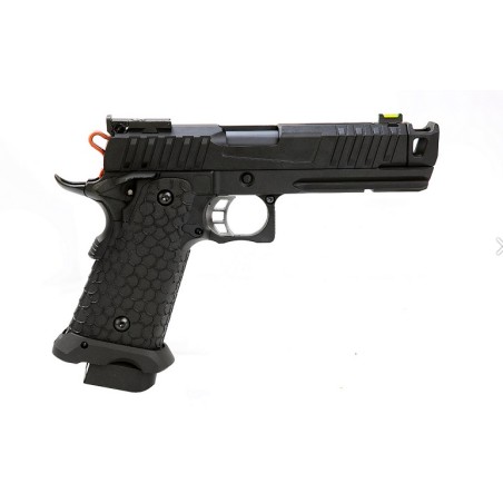La pistola de airsoft TroiKa MK1 Hi-Capa de Gas ofrece líneas limpias, un estilo agresivo y un rendimiento fiable para jugadores exigentes. Basada en la popular plataforma Hi-Capa, la MK1 cuenta con corredera y armazón totalmente metálicos para una sensación realista y una larga vida útil. Su empuñadura texturizada garantiza un agarre seguro, mientras que el riel para accesorios ofrece flexibilidad para accesorios tácticos. Con retroceso y un potente rendimiento de Gas, la MK1 está lista para combate cuerpo a cuerpo (CQB) o competición.